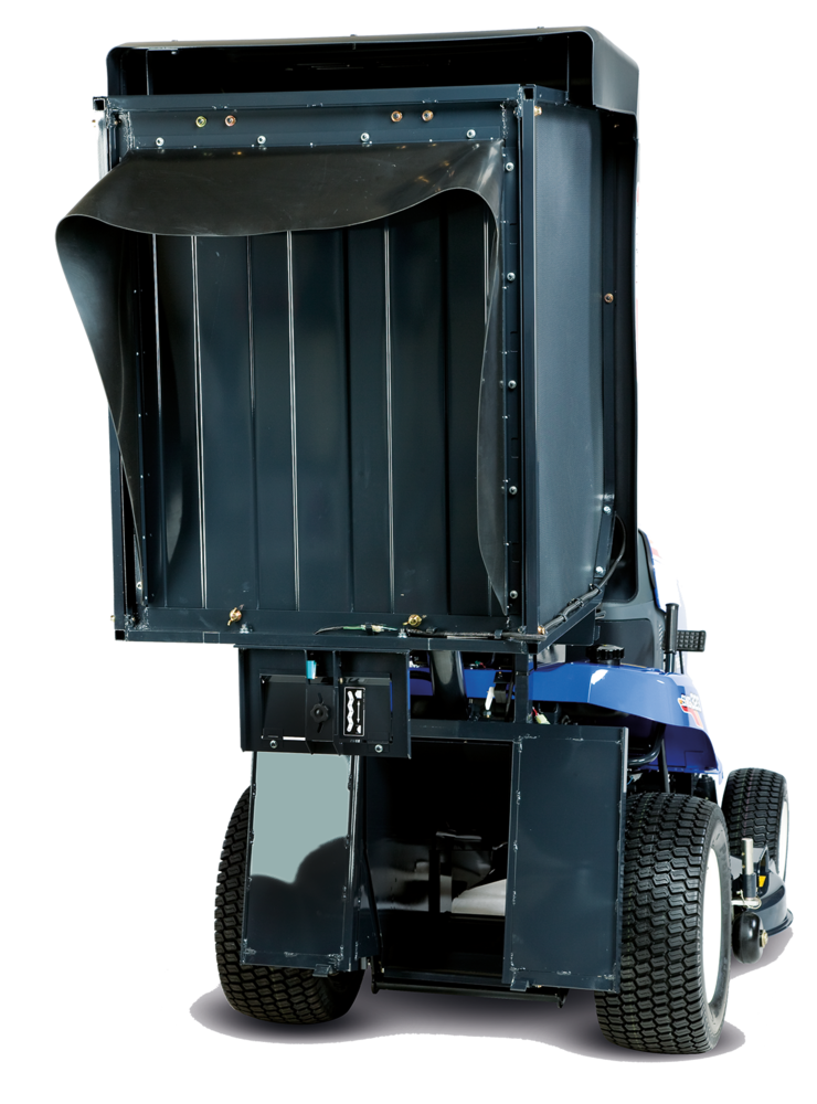 ISEKI Grasaufnahme für SXG 323 und SXG 326 mit Bodenentleerung 550L, mit hydraulischer Betätigung zum Öffnen und Schließen der Grasaufnahme.