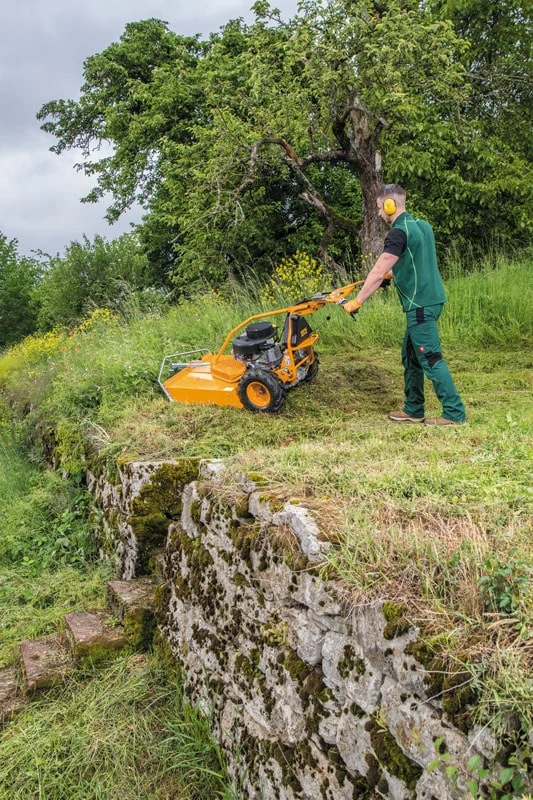 Mit zwei Messer-Geschwindigkeiten und fünf Gängen bewältigt der Wiesenmäher AS 73 4T B&S starke Steigungen. dichten Bewuchs und große Flächen. Bei diesem Allmäher® haben Sie per Variospeed die Wahl: Die schnellere Messergeschwindigkeit um ein feineres Mulchergebnis zu erreichen. die langsamere für höhere Drehmomente bei härteren Einsätzen – bei selten gemähten Flächen ein unverzichtbarer Vorteil.