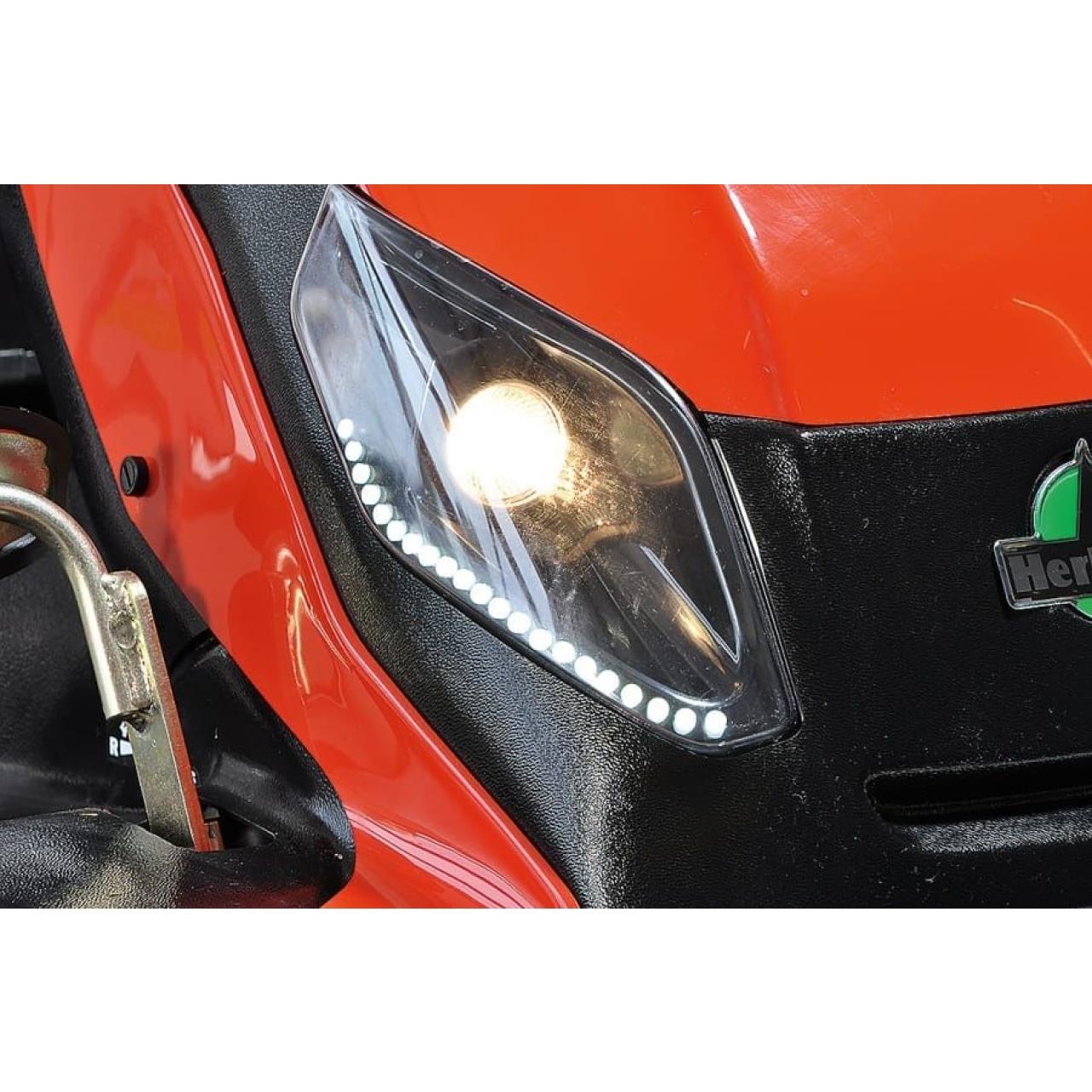 Als besonders stabile Version der bewährten Herkules HXT-Mäher ist der HXT 110 26 4WD mit verstärktem Überrollbügel, zusätzlichem Rammschutz und solidem Hochgrasdeck ausgestattet. Der serienmäßige Allradantrieb und die griffigen Ackerstollenreifen bringen den Mäher sicher durch unwegsames Gelände und extensiv gepflegte Hochgrasflächen. Der Mäher ist optimiert für den professionellen Dauereinsatz. Komplette Beleuchtung mit LED-Tagfahrlicht, Tuff Torq K664 Profigetriebe, Komfortsitz mit Sicherheitsgurt, robustes Hochgrasdeck mit 110cm Schnittbreite und der durchzugsstarke 26HP 2-Zylinder Motor sind nur einige Bestandteile der kompletten Profiausstattung.