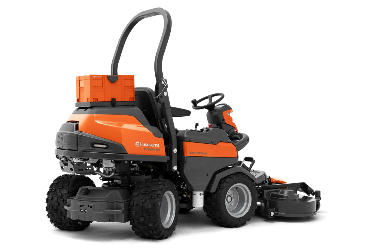 Der fernsteuerbare HUSQVARNA P524XR EFI mit seinem kraftvollen Kawasaki V-Twin FX730V EFI-Motor, Knicklenkung und Allradantrieb.
