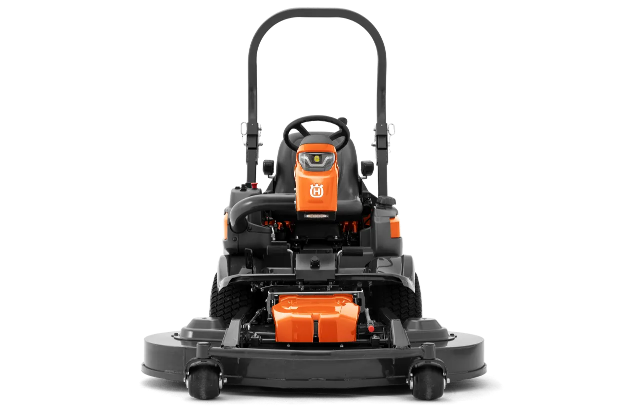 - Die niedrige Position des frontmontierten Mähwerks erlaubt eine hervorragende Zugänglichkeit. So kann auch unter Zäunen, Büschen, Parkbänken und dergleichen gemäht werden.